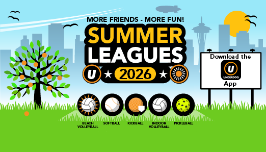 Underdog Sports Leagues offers year-round 21+ Co-ed Recreational Volleyball Leagues throughout the greater Seattle area. Why not try it out before committing to a full season?